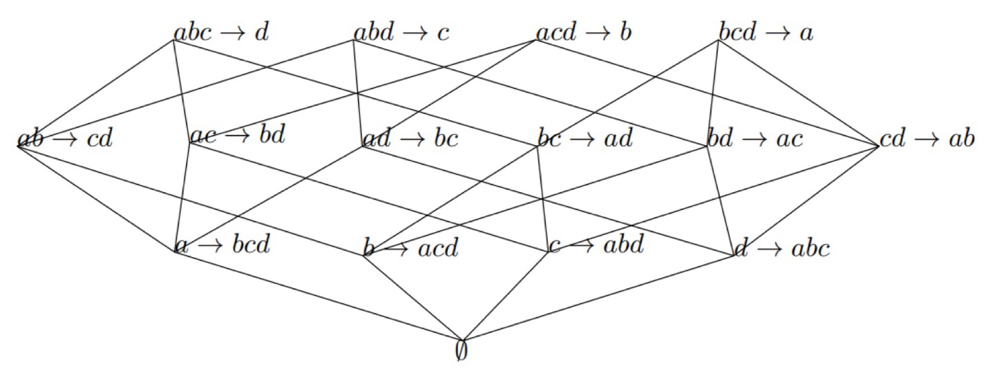 그러면 이 R도 위처럼 lattice로 표현할 수 있다. 똑같이 윗부분의 좌변이 아랫부분의 좌변을 포함하고 있다.