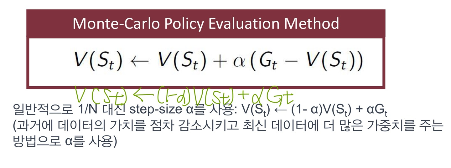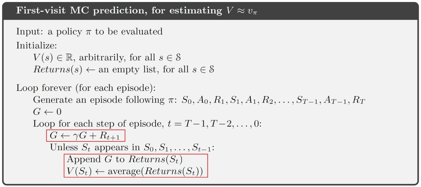 에피소드를 반복해 나가면서 각 state의 보상의 합인 state-value function이 누적되고, 이 평균으로 실제 값을 추정