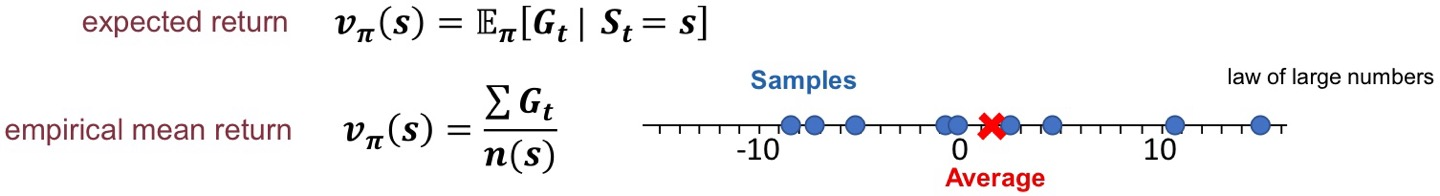 여기서, 임의 state의 value function은 expected return 대신 empirical mean return이용