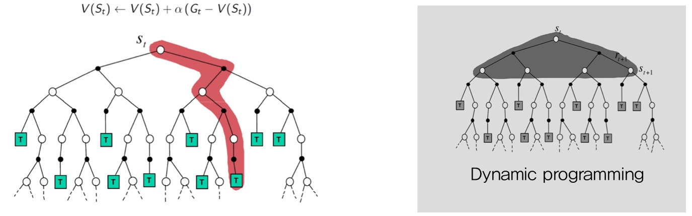 - 각 state의 상태가치함수가 다른 state의 가치함수와 독립적 계산 (DP에선 연관됐었음)