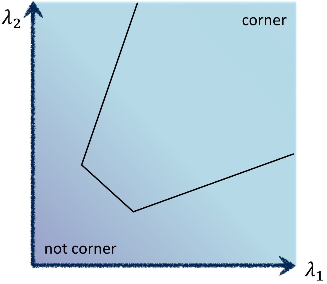 고유값에 대한 임계값을 이용해 corner인지 아닌지 판별