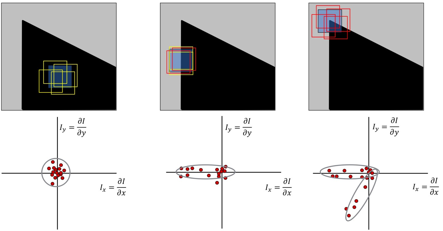 편하게 생각하려면, 이미지상 corner 또는 edge인 부분을 오른쪽으로 90도 회전하면 derivation 좌표가 찍히게 된다.