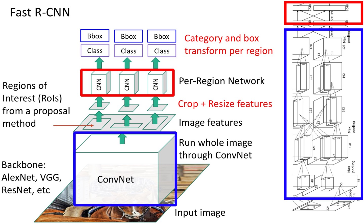 그 convnet을 backbone이라 하는데, 어떤 구조를 쓸지는 뭐.. 아무거나 정하는 것이다. AlexNet, VGG, ResNet 등..
