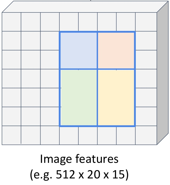 이렇게, 이미 만든 Image features에서 객체의 bbox 부분을 찾아, 원하는 크기로 만들기 위해 각 격자를 나누면 된다.