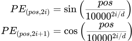 짝수 index는 sin을, 홀수 index는 cos을 사용해서 식을 세울 수 있다.
