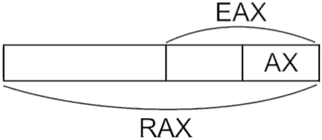 RAX가 64, EAX가 32, AX가 16bit 이런 식으로 된다.