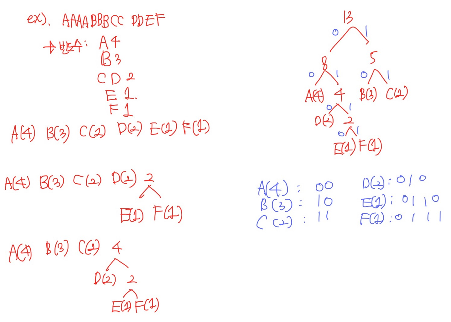 많이 출몰하는 단어(글자)는 이진수로 나타낼 때 길이를 짧게 하도록