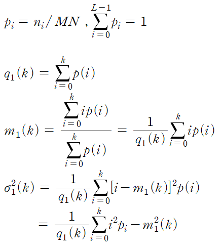 0~255의 픽셀값을 다 탐색해서, 0~k는 class 1로, k+1~255는 class 2로 나눴을 때 각 클래스 내부 원소끼리 분산이 작은 아이로.. k를 골라야 함. 저 k가 올바른 threshold임.