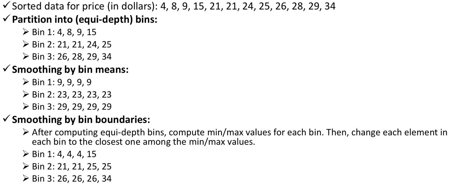 - 각 bin의 평균/중앙값/경계값 등을 이용해 데이터를 스무스하게 만든다.
